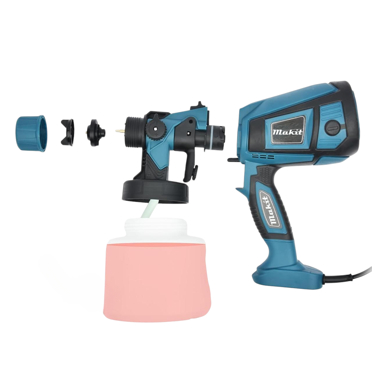 Електричний фарборозпилювач Makita призначений для нанесення різних видів фарб, ґрунтовок і лаків. Оснащений баком об'ємом 1,4 л та системою регулювання інтенсивності розпилення, що робить його зручним для фарбування автомобілів, стін, стель, меблів і садових робіт.