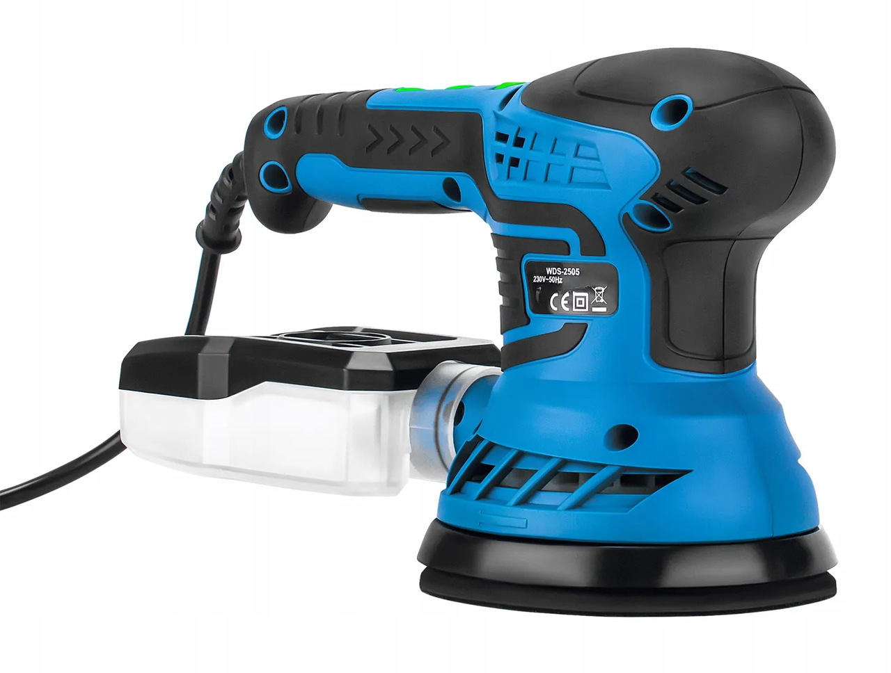 Ексцентрикова шліфмашина WDS 2505 - орбітальна шліфувальна машина з потужністю 450 Вт та регулюванням обертів від 6000 до 12000 обертів на хвилину. Діаметр робочого диска становить 125 мм.