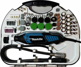 Гравер Makita GD0605 — багатофункціональний інструмент для шліфування, різання, гравіювання, свердління та інших завдань. Завдяки компактним розмірам і малій вазі, цей інструмент зручно використовувати навіть у важкодоступних місцях. Потужність двигуна складає 300 Вт, а частота обертів варіюється від 4000 до 35000 об/хв, що дозволяє досягати високої точності. Гравер комплектується гнучким валом і набором з 200 насадок.