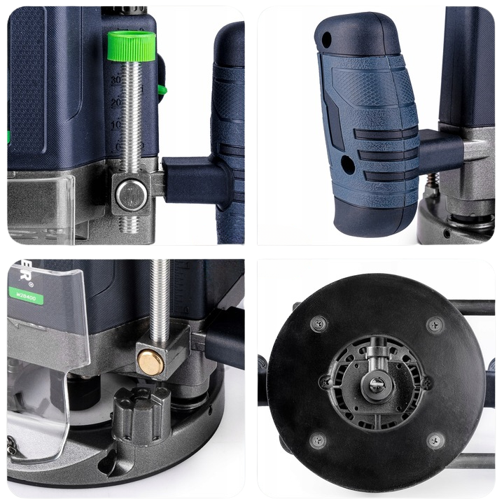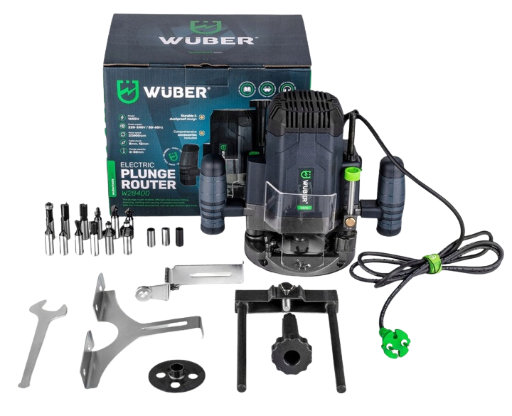 Електричний фрезер мережевий WUBER із регулюванням обертів 16000-30000 об/хв і потужністю 2035 Вт призначений для фрезерування деревних матеріалів. Цей інструмент забезпечує точне оброблення країв і пазів завдяки системі видалення тирси. Завдяки прогумованим рукояткам забезпечується зручне керування.