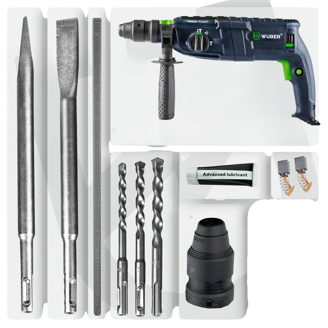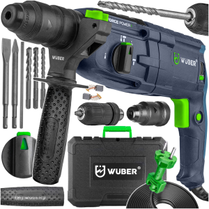 Перфоратор мережевий Wuber перфоратор з патроном SDS-plus та 3 режимами свердління в пластиковому кейсі із свердлами пікою та долотом