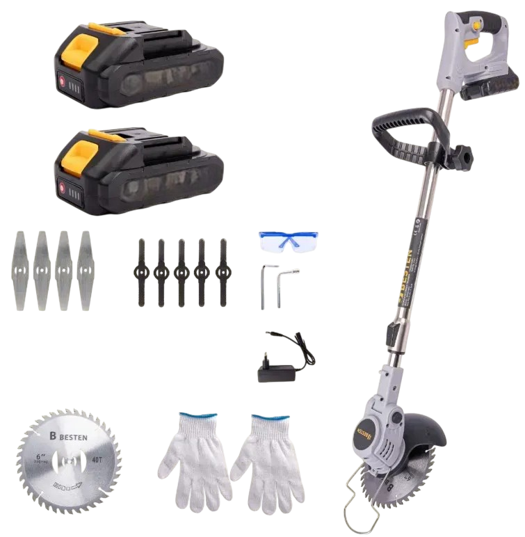 Акумуляторний тример BESTEN BE0002869 косарка з кутом нахилу головки для газону та бур'янів з 2 АКБ 36V/5Ah