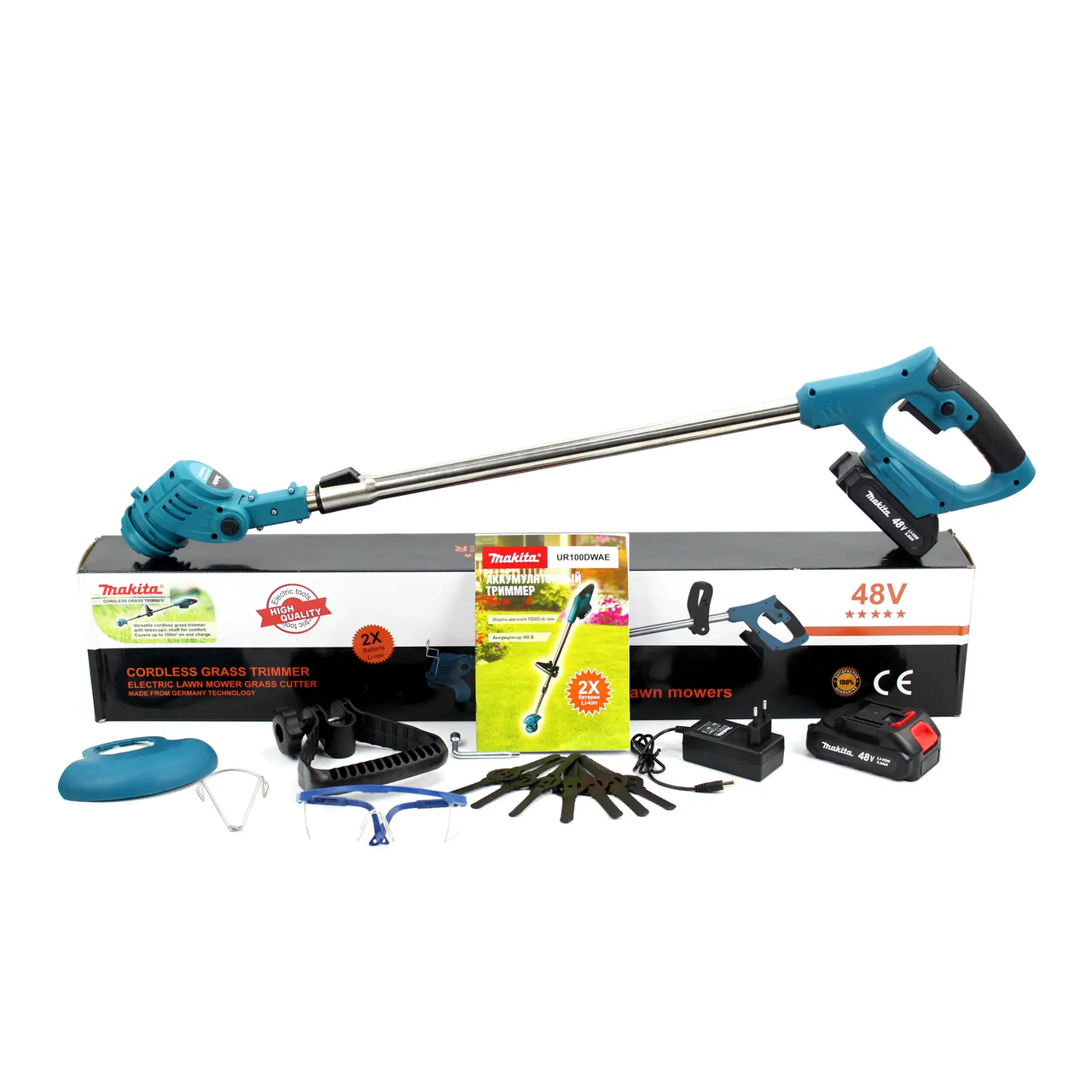 Акумуляторний тример Makita UR100DWAE електричний тример на акумуляторі для саду із 2 АКБ 48V, 5Ah