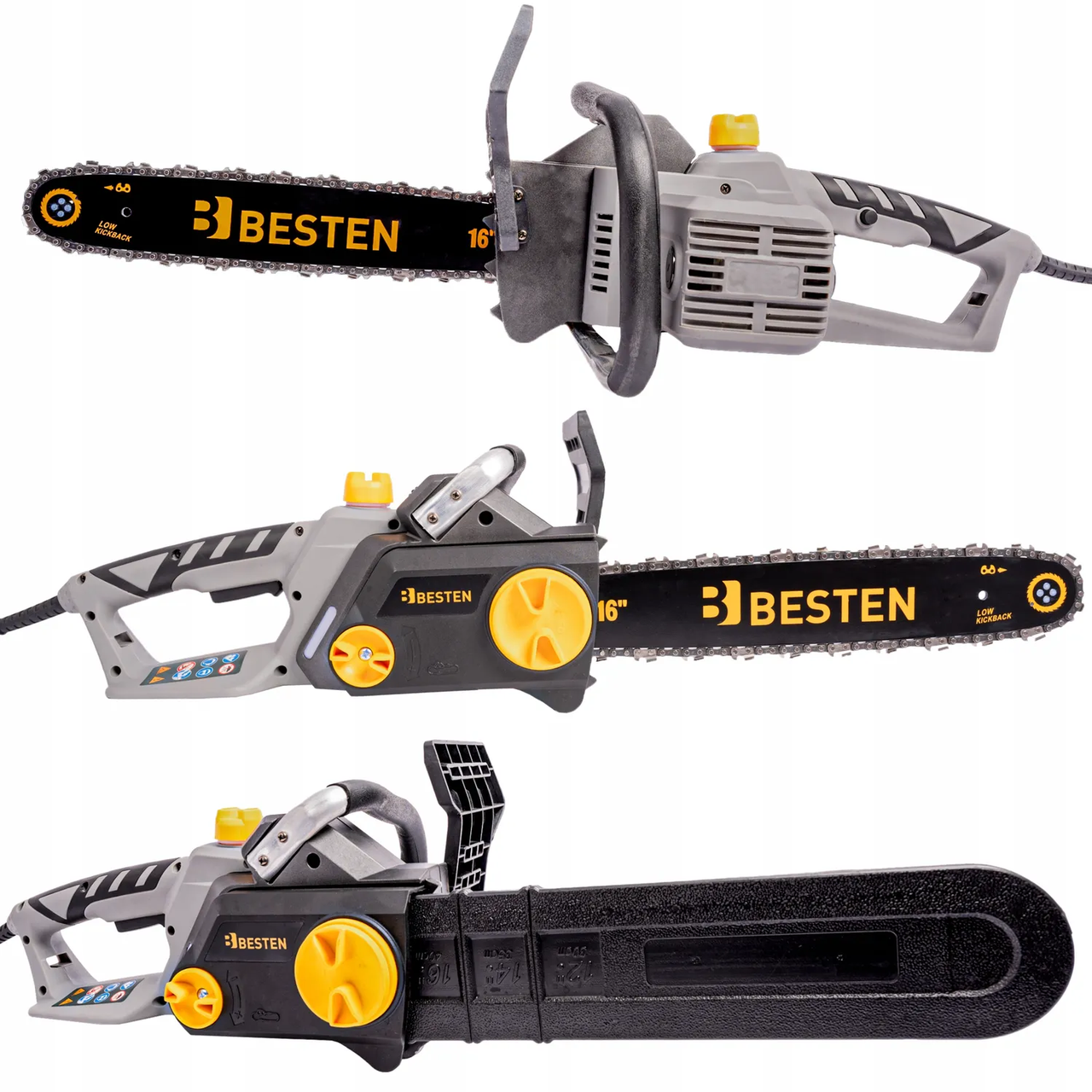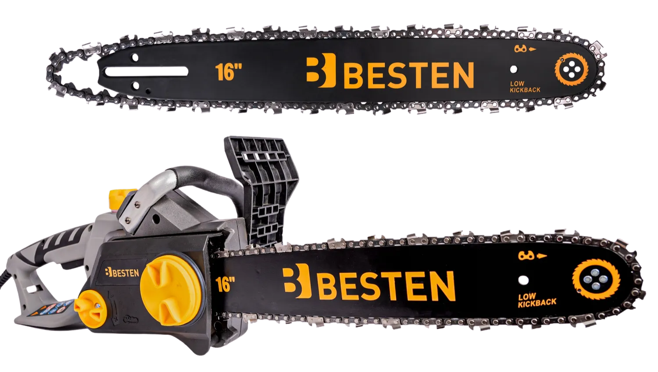 Мережева ланцюгова пила BESTEN Електропила з безключовим натягуванням шина 36 см для обрізки гілок і дерев 2.2 кВт