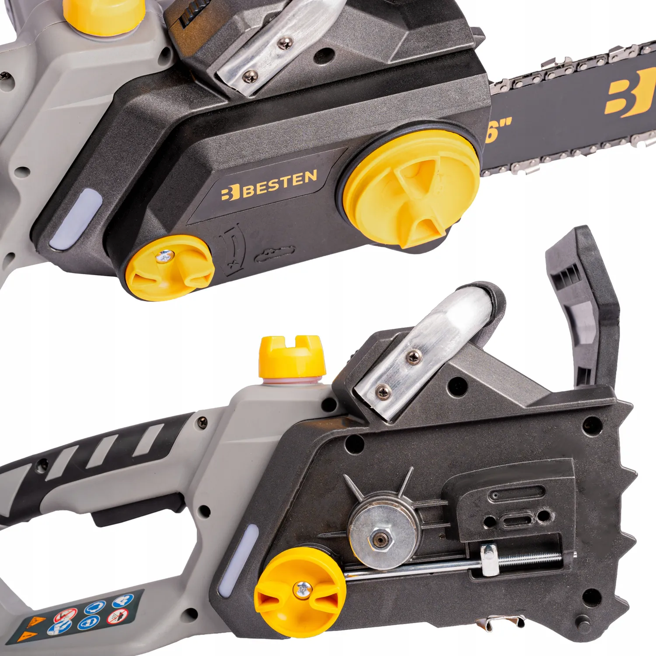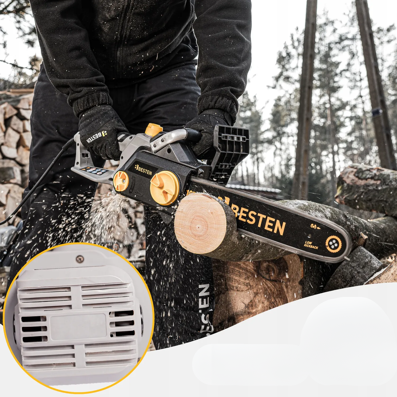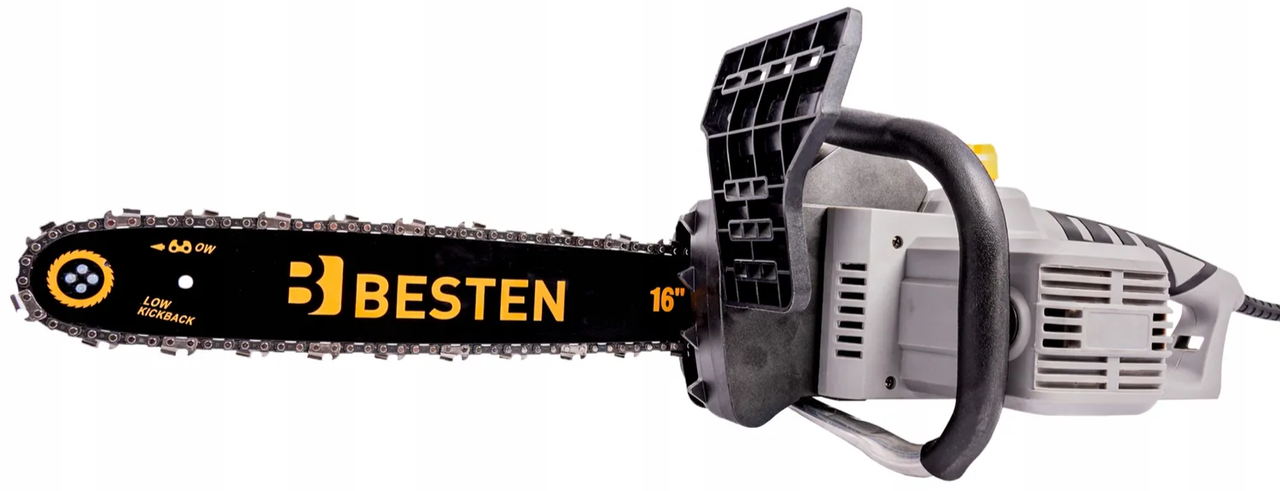 Мережева ланцюгова пила BESTEN електропила з безключовим натягуванням шина 36 см для обрізки гілок і дерев 2.2 кВт призначена для розпилювання деревини різної вологості. Цей інструмент підходить для садових робіт, столярства та розкрою дерев'яних плит завдяки зручній конструкції. Він є практичним рішенням для домашнього та професійного використання.