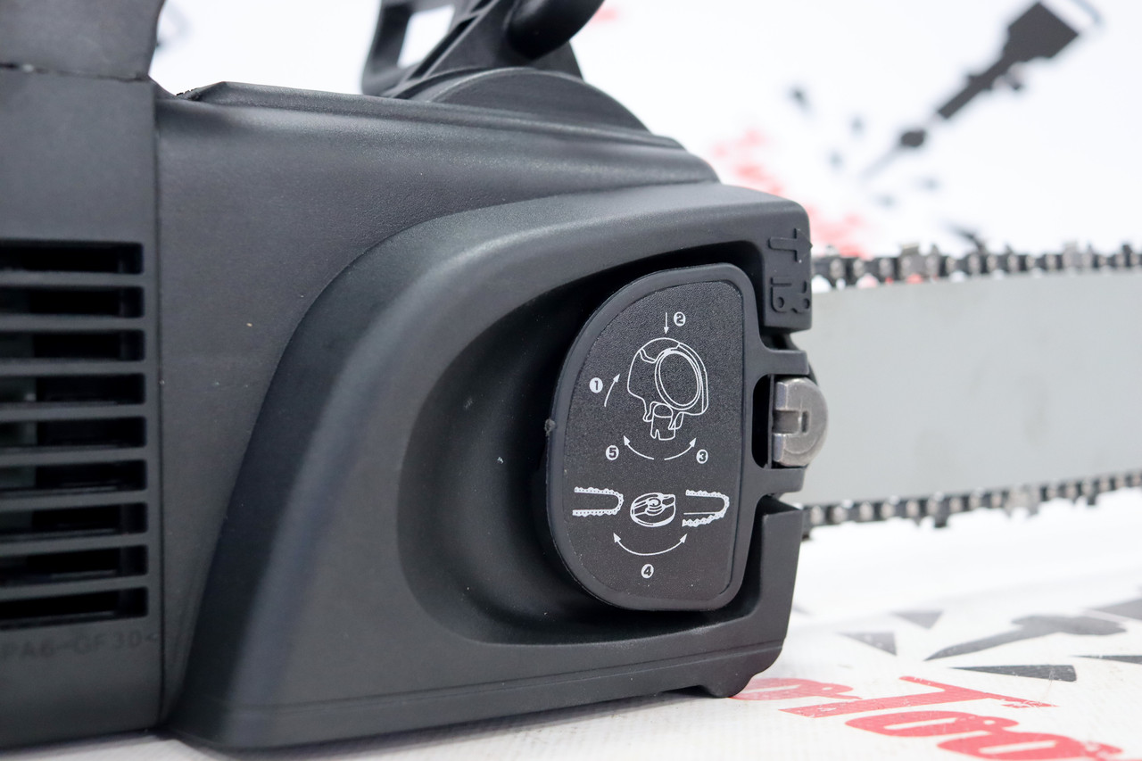 - Прозоре віконце для контролю рівня мастила ланцюга.