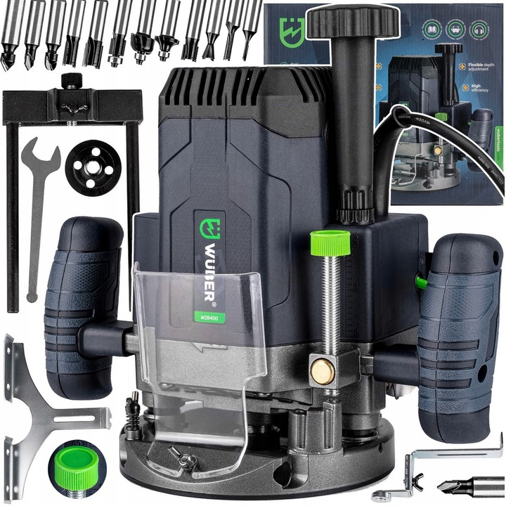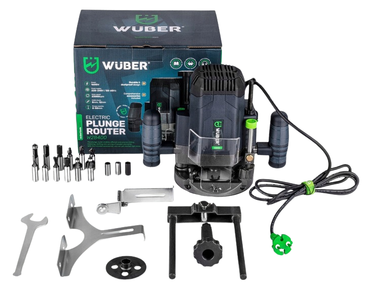Електричний фрезер мережевий WUBER із регулюванням обертів 16000-30000 об/хв і потужністю 2035 Вт призначений для фрезерування деревних матеріалів. Цей інструмент забезпечує точне оброблення країв і пазів завдяки системі видалення тирси. Завдяки прогумованим рукояткам забезпечується зручне керування.