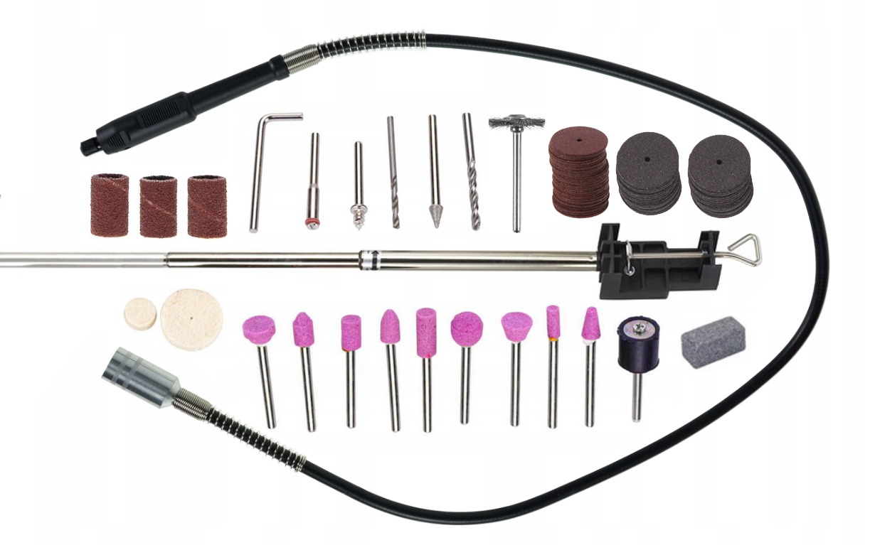Прямая шлифмашина-гравер с гибким валом и 300 насадками в пластиковом кейсе , оснащенная мощностью 165 Вт, предназначена для точной обработки поверхностей в труднодоступных местах.