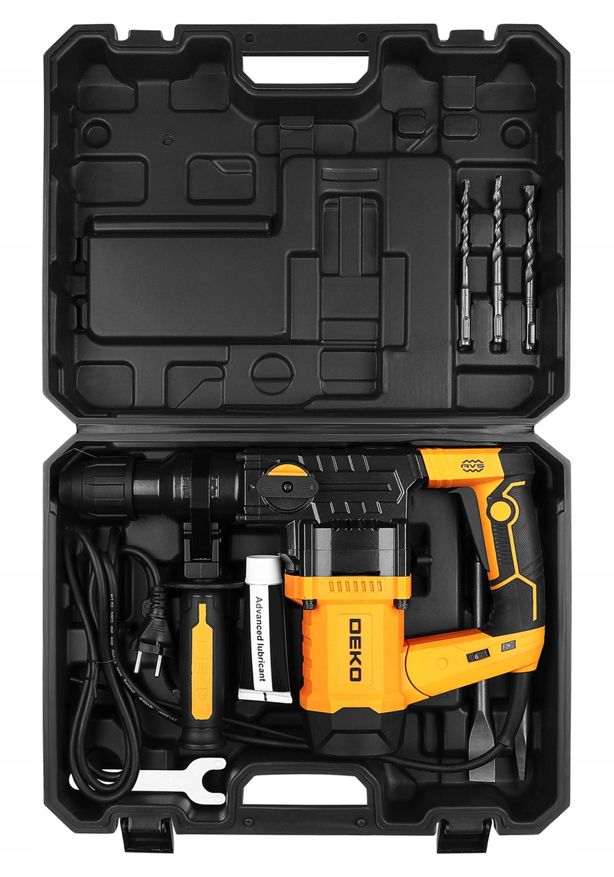 Сетевой перфоратор ударный бочковый DEKO (1155 Вт 4.5 Дж) с патроном SDS Plus в кейсе набор зубил