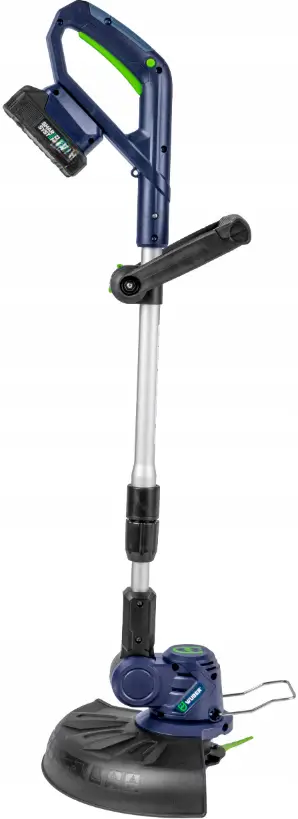 Аккумуляторный триммер WUBER с регулируемым углом наклона головки по уходу за газоном и сорняками, оснащенный 2 АКБ 36V/5Ah, предназначен для эффективного стрижения.