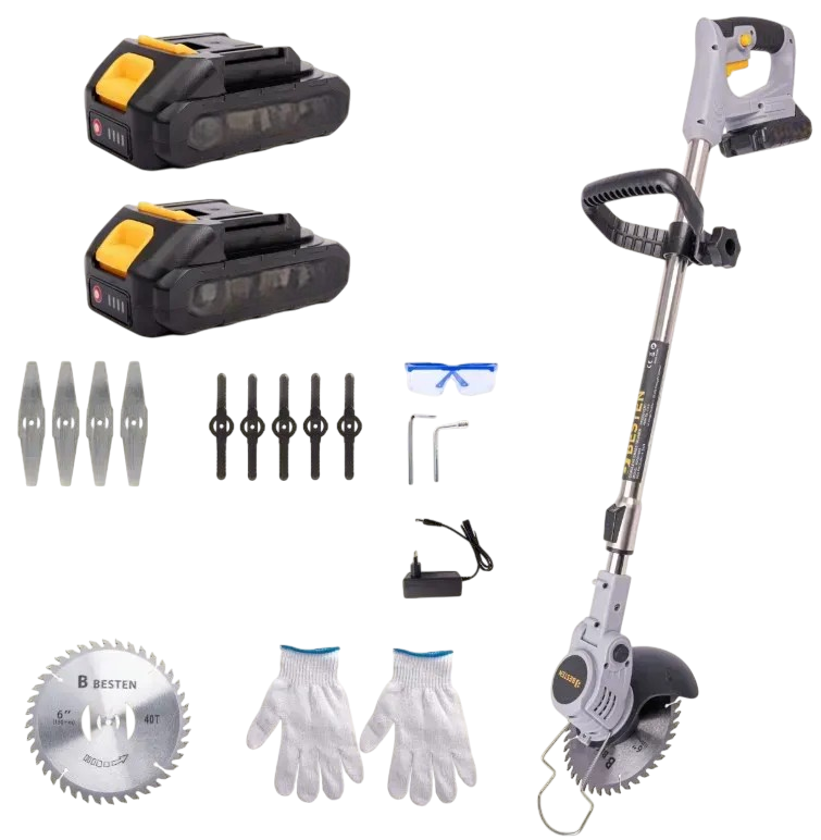 Акумуляторний тример BESTEN BE0002869 косарка з кутом нахилу головки для газону та бур'янів з 2 АКБ 36V/5Ah